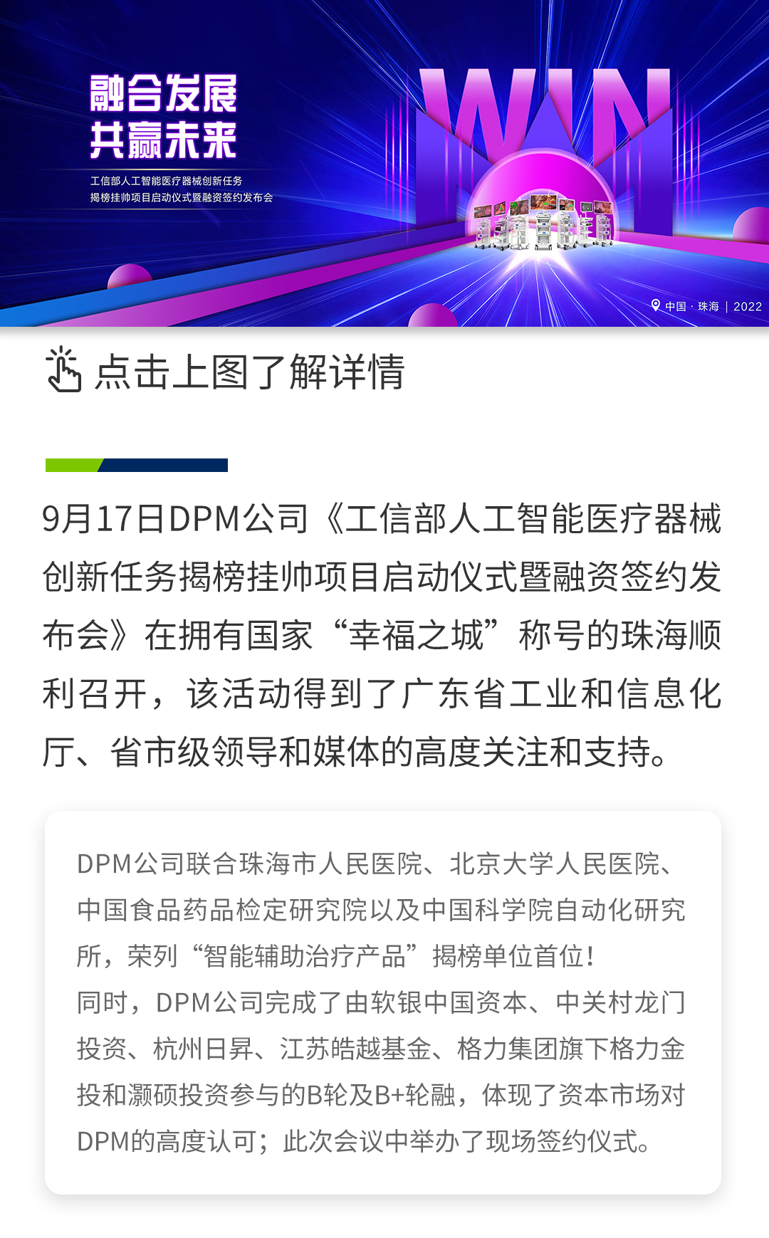 工信部人工智能醫(yī)療器械創(chuàng)新任務(wù)揭榜掛帥項目啟動儀式暨融資簽約發(fā)布會